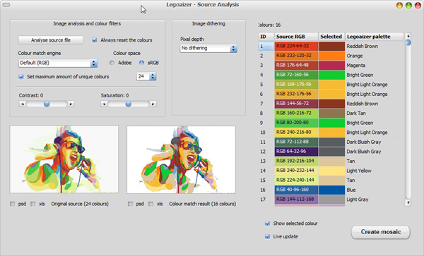 colours instead. The output is as usual: a (brick) mosaic image