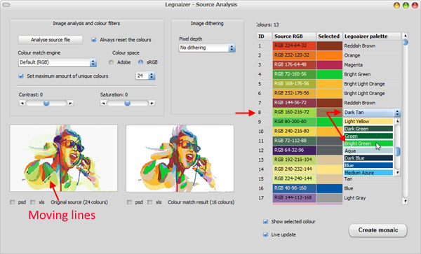 of the 'normal' mosaic creation. We will now select a different colour matching