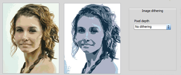 solid colour. The best approach is to select 'Palette colour' dithering. Here the dithering is done