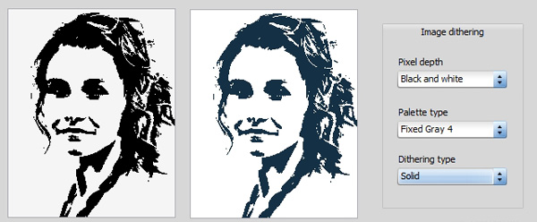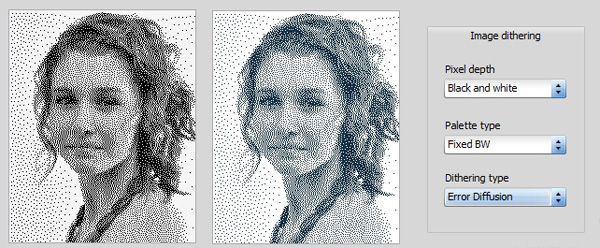 in mind. Example 2: black and white dithering. Only two 'colours' are required. It selects the best fit with