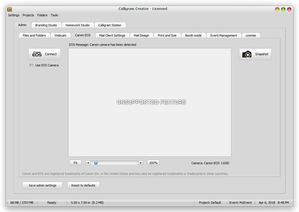 have installed Canon's own proprietary application (Canon EOS Utility), to control the camera via